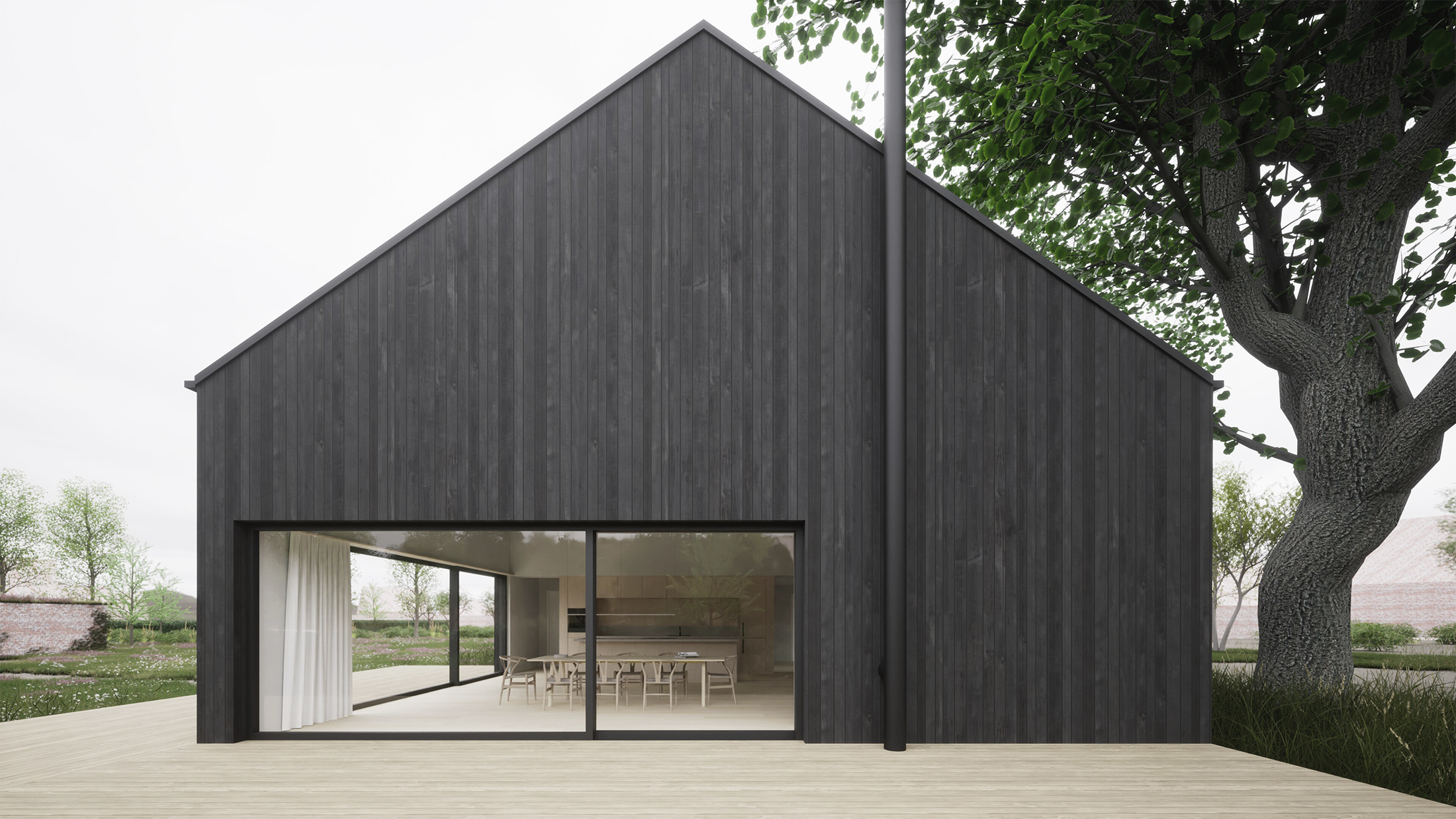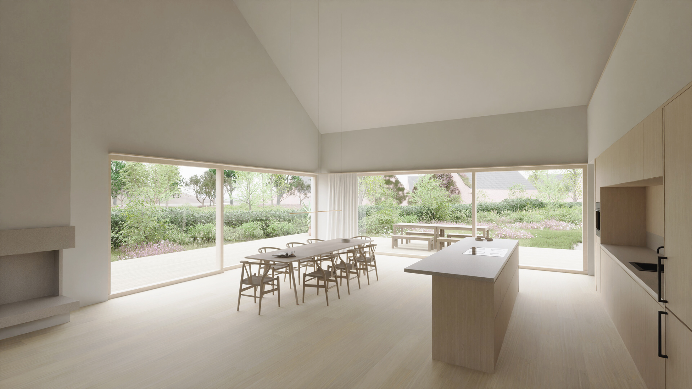 In der Nähe des Sehlendorfer Strandes an der Ostsee entsteht ein Ferienhaus in Holzbauweise, das als zentraler Ort für die Zusammenkunft der Familie eines Berliner Unternehmers genutzt wird. Die Wohnküche, als Herzstück des Hauses, öffnet sich über großflächige Öffnungen zum Garten hin und ist über einen Luftraum mit dem Arbeitsbereich im Obergeschoss verbunden.