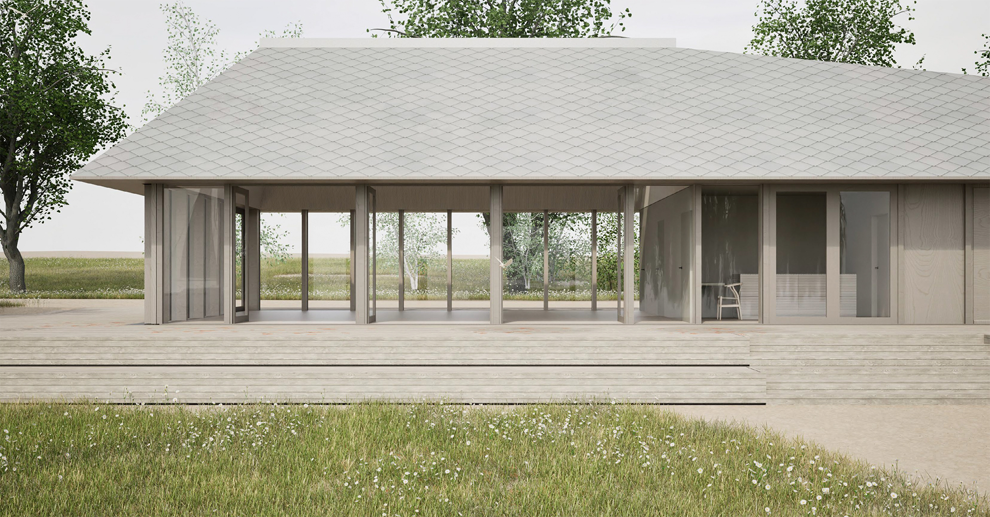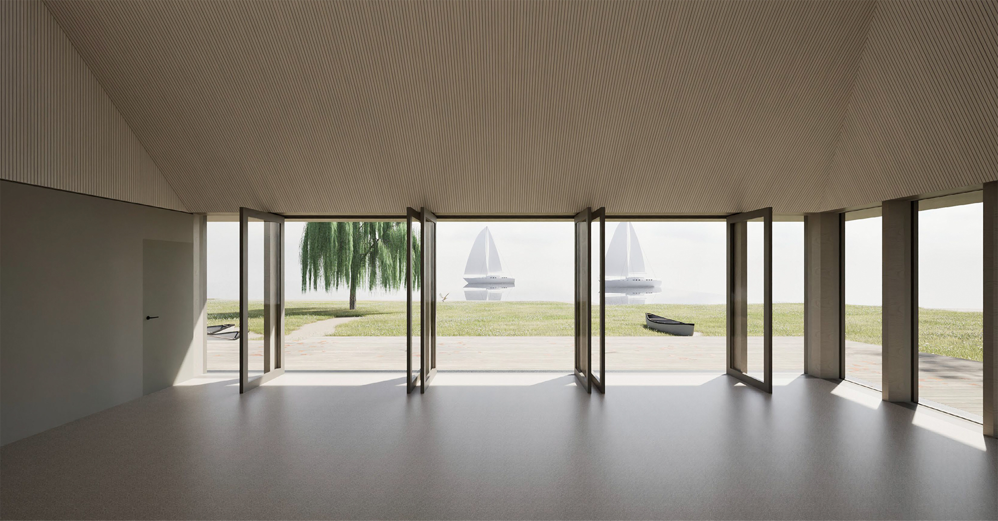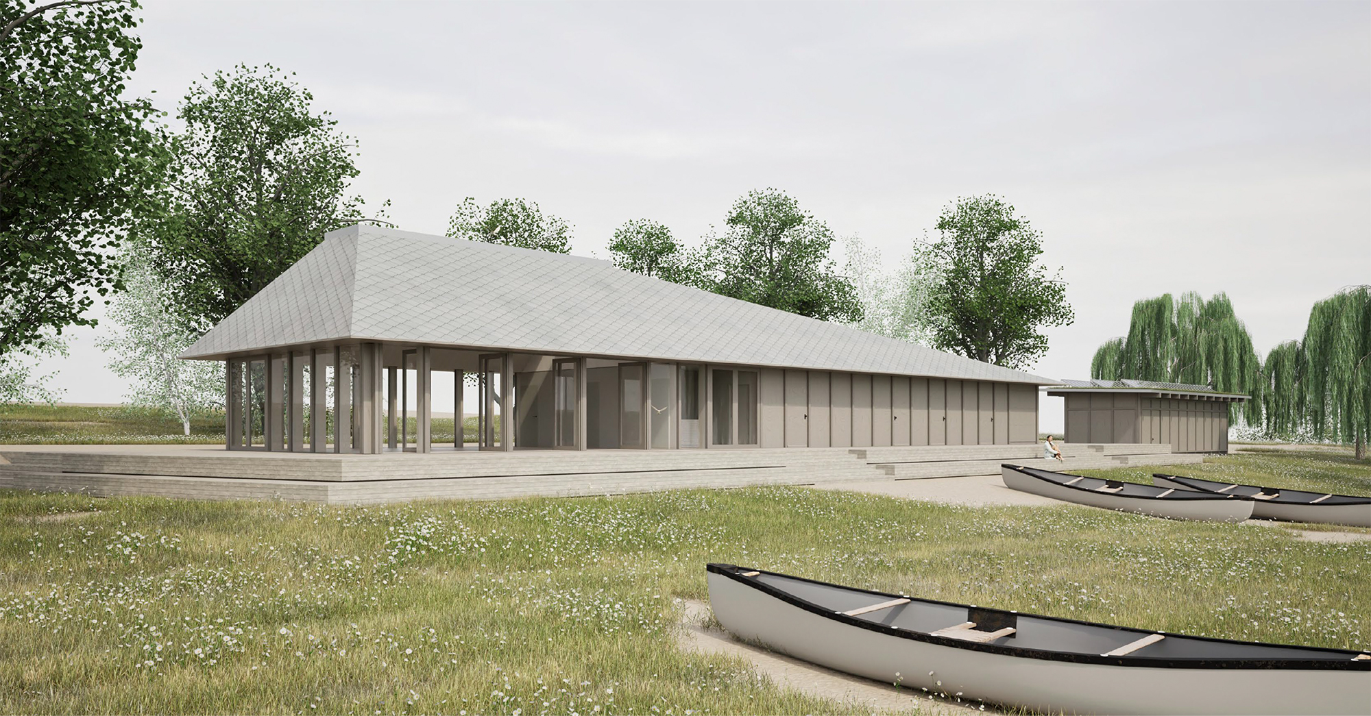 Im Rahmen der Durchführung der Bundesgartenschau 2025 nutzt die Stadt Rostock das Potential, konzentriert ein umfassendes Entwicklungskonzept für die Innenstadt rund um die Unterwarnow umzusetzen. Als Teil der umfassende Neugestaltung des Areals entsteht ein direkt am Strand der Warnow gelegenes Multifunktionsgebäude. Das auch als Schulungszentrum für Wassersport genutzte Haus erinnert durch seine langgestreckte Bauform an ein im Sand liegendes Stück Treibholz. Das Gebäude umfasst einen großzügigen Schulungsraum sowie weitere Räume, die dem geplanten Strandbad an der Warnow als Umkleiden und WC-Anlagen zur Verfügung stehen.